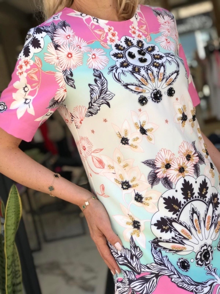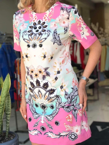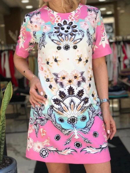 Къса рокля в розово с декорации от камъни