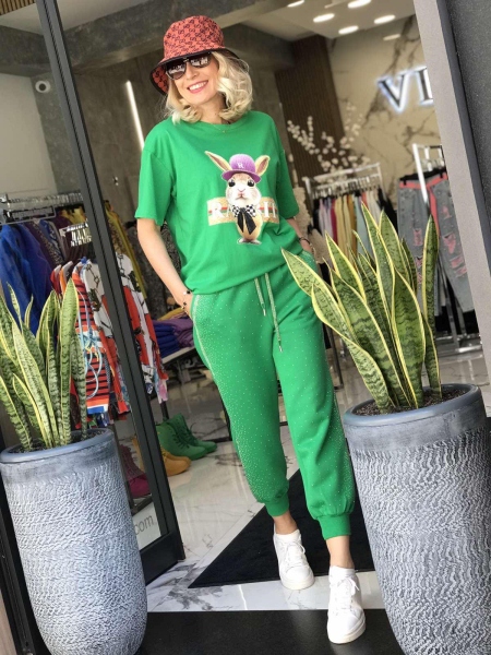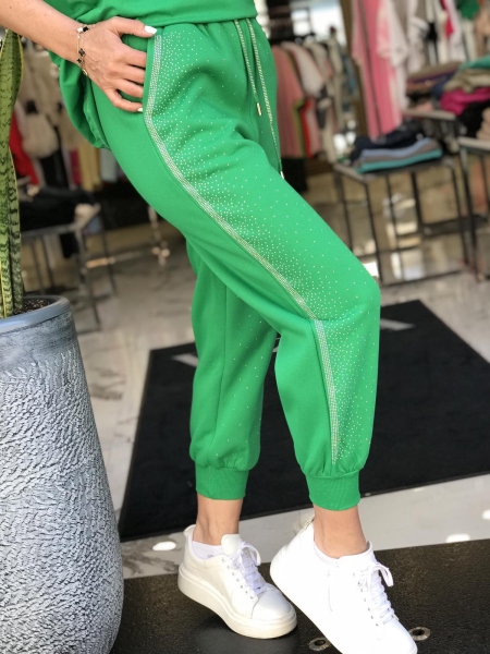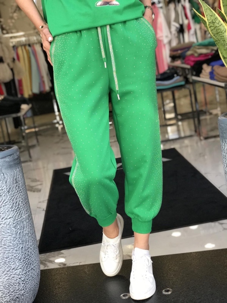 Панталон в зелено с камъчета