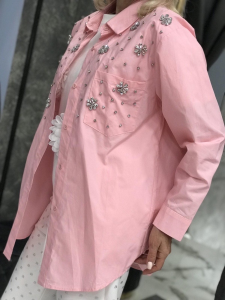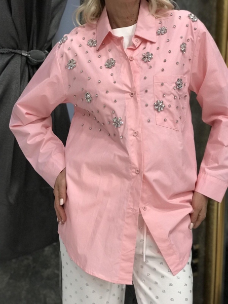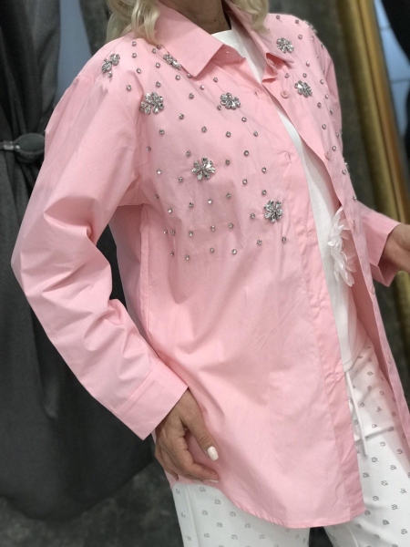 Риза със свободен силует от тънка материя. Моделът е универсален размер и е подходящ за S, M, L.