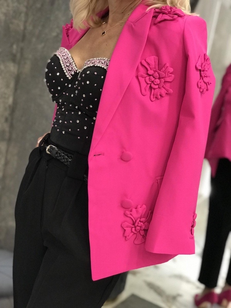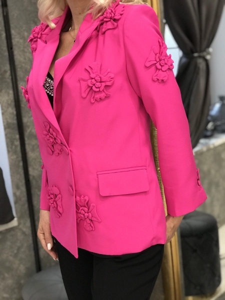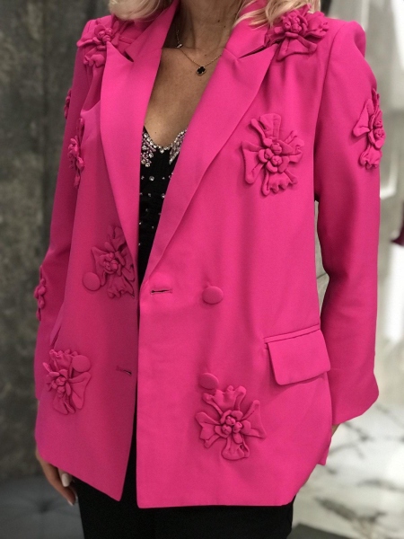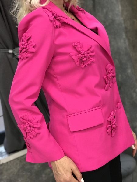 Сако в цикламен цвят с прав силует. Моделът се закопчава с копчета.