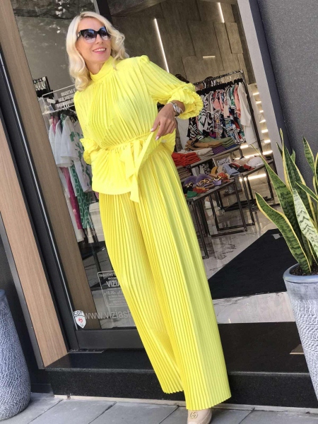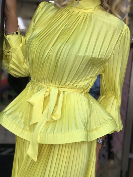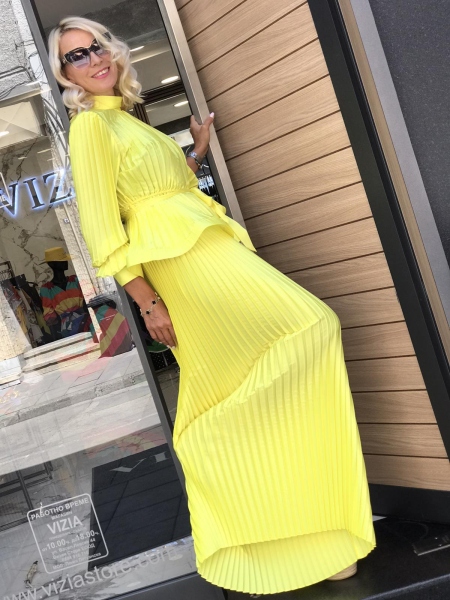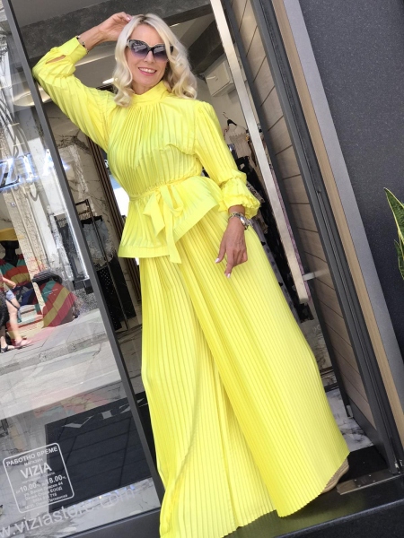 Луксозен солиран комплект в жълт цвят