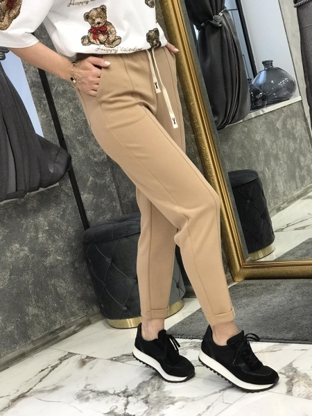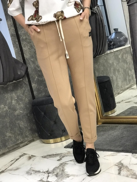 Панталон от трико с изчистен дизайн. Моделът е със стесняващи се крачоли и ластик в талията.