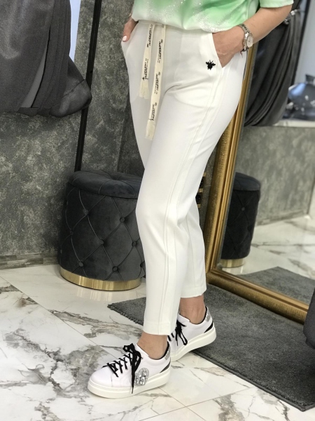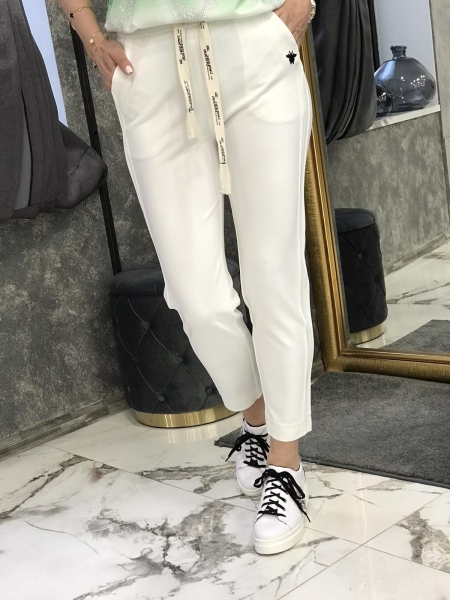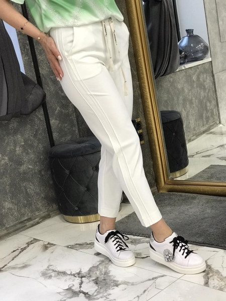 Панталон от трико с изчистен дизайн. Моделът е със стесняващи се крачоли и ластик в талията.