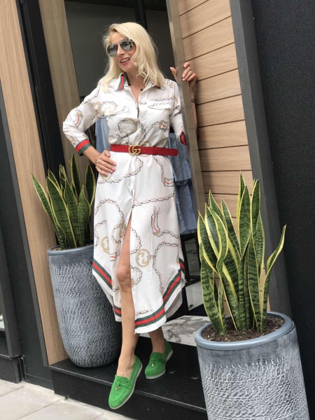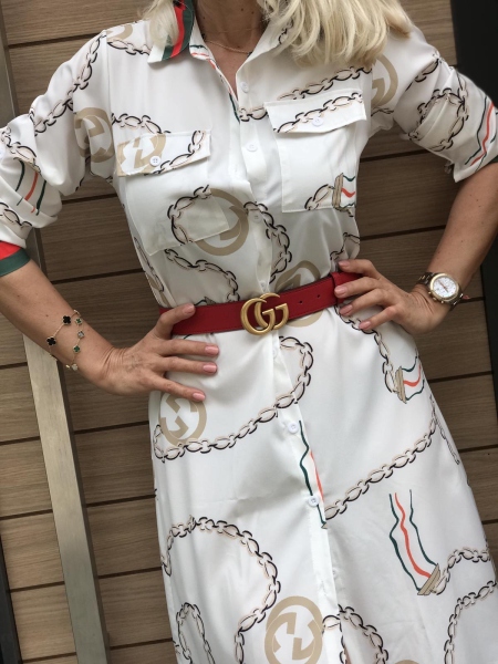 Дълга рокля тип риза от тънка материя. Моделът е с втален силует и се закопчава изцяло с копчета.