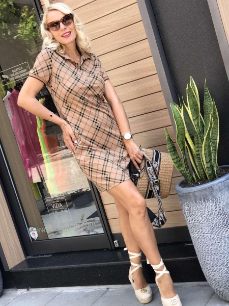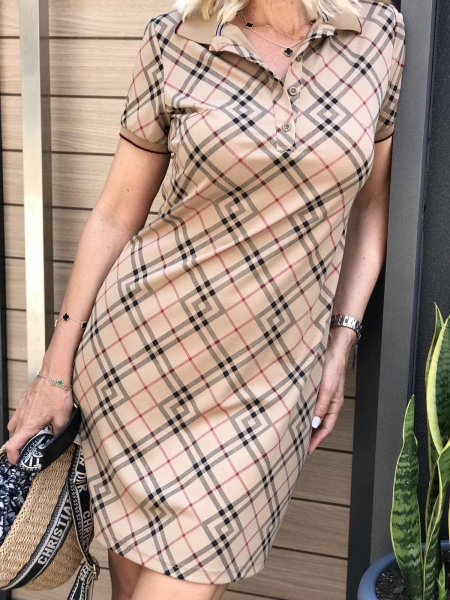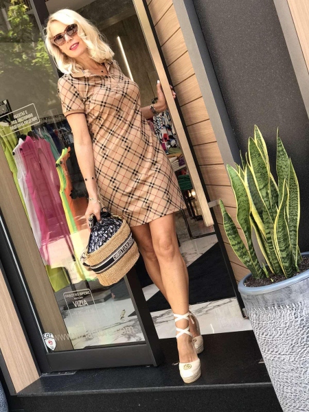 Рокля с втален силует и къс ръкав. Моделът се облича без закопчаване. Материята има разтегливост.