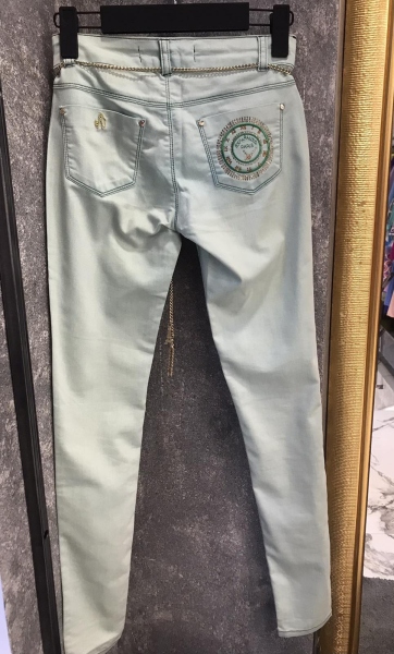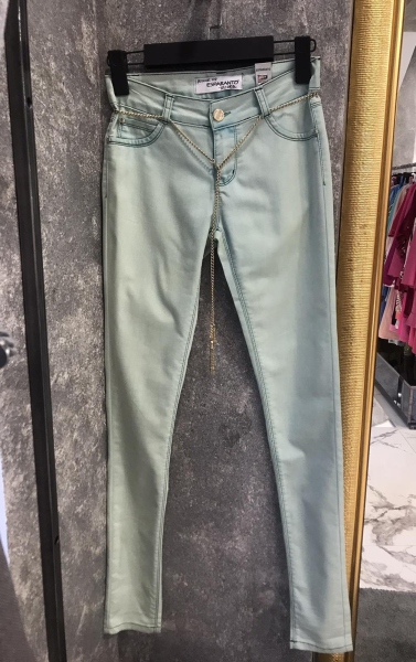 Дънки по тялото с аксесоар метален колан. Моделът се закопчава с цип и компче.