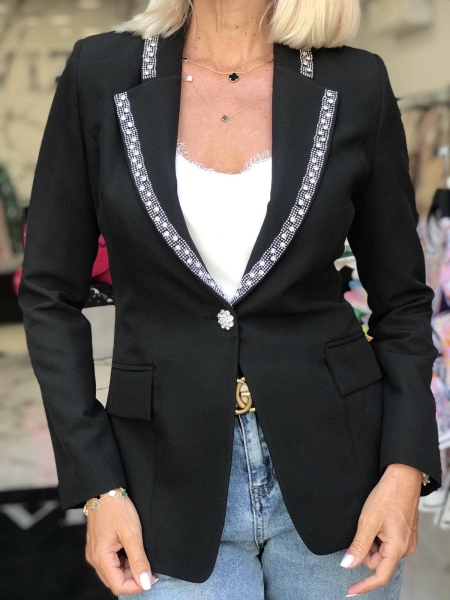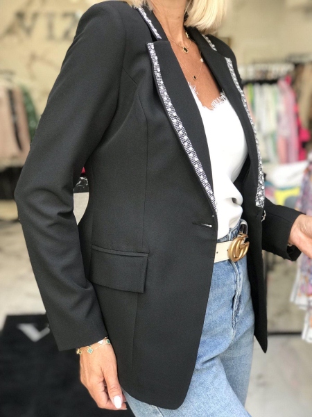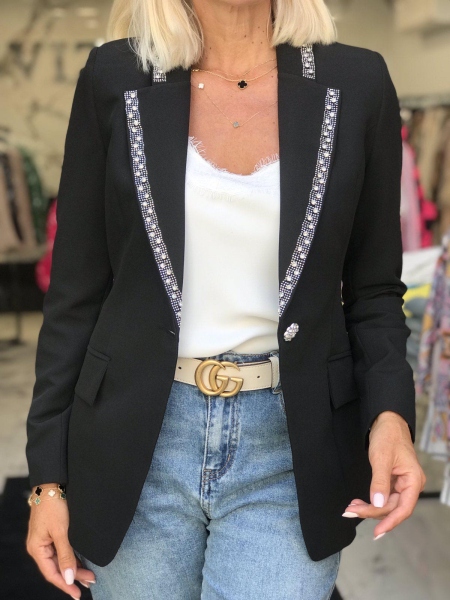 Елегантно сако с камъни на ревера в черно