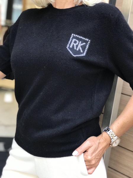 Блуза от фино плетиво в черен цвят с къс ръкав. Моделът е с втален силует. Размерът е универсален.