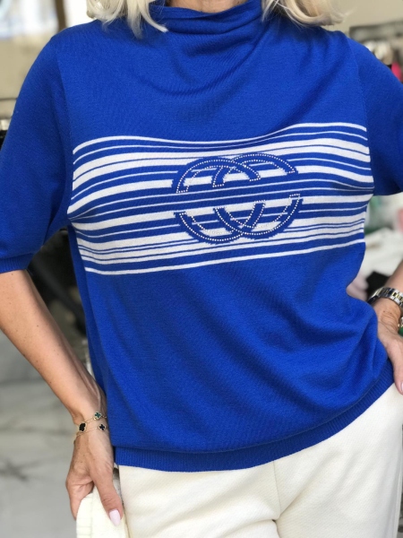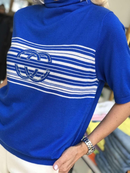 Поло от фино плетиво с къс ръкав и свободен силует. Моделът е универсален размер.