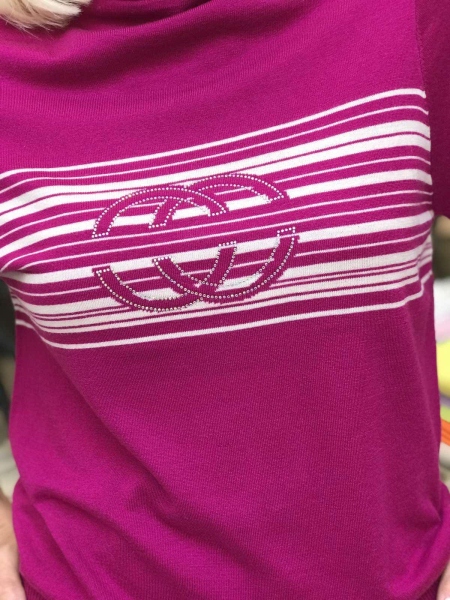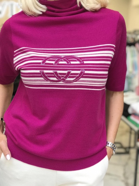Поло от фино плетиво с къс ръкав и свободен силует. Моделът е универсален размер.