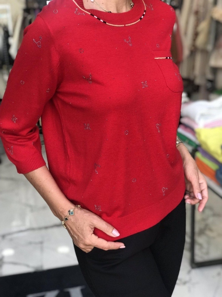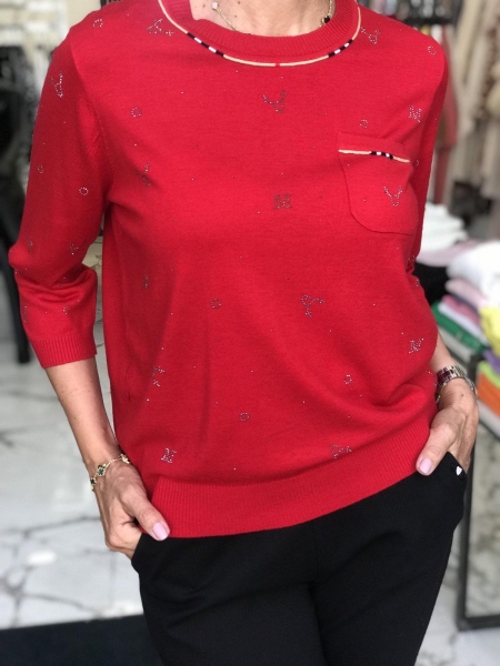 Блуза от фино плетиво в червен цвят. Моделът е с втален силует и 7/8 ръкав. Размерът е универсален и е подходящ за S, M, L.