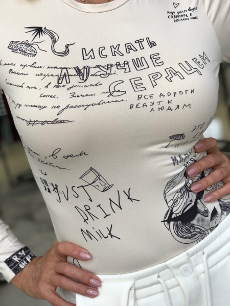 Боди в цвят екрю от трикотажна материя. Моделът е с втален силует. Размерът е универсален и е подходящ за S, M.