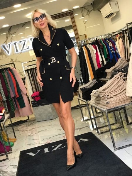 Рокля от материя наподобяваща на бандажна с втален силует. Моделът се закопчава с копчета. Подходяща за размер S/M.