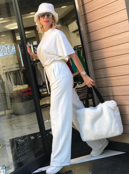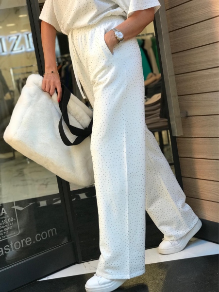 Панталон в бяло с камъчета