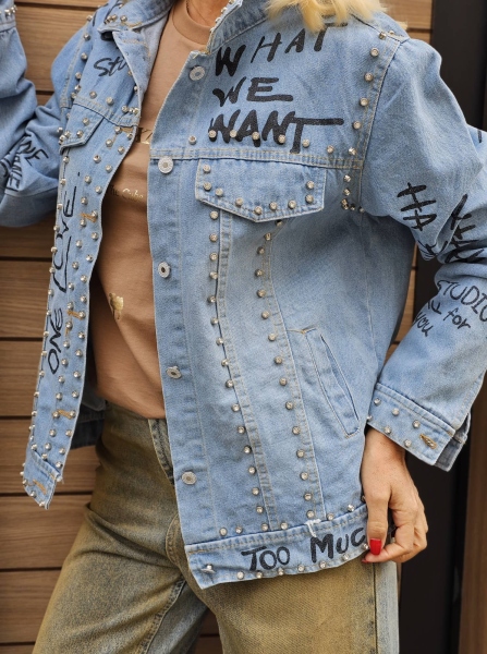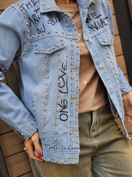 Яке от светъл деним със свободен силует. Размерът е универсален и е подходящ за S, M.