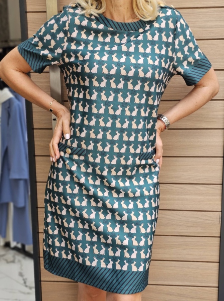 Рокля в зелен цвят с права кройка. Моделът се закопчава с цип.