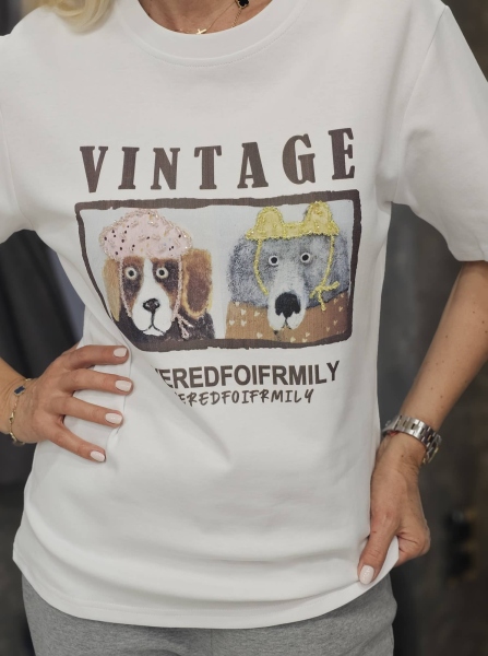 Тениска от памучна материя със свободен силует. Размерът е универсален и е подходящ за M, L.