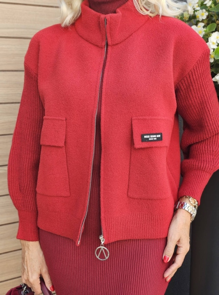 Жилетка в цвят бордо от мека и плътна материя. Моделът е със свободен силует, външни джобове и закопчаване с метален цип. Размерът е универсален подходящ за S, M, L.