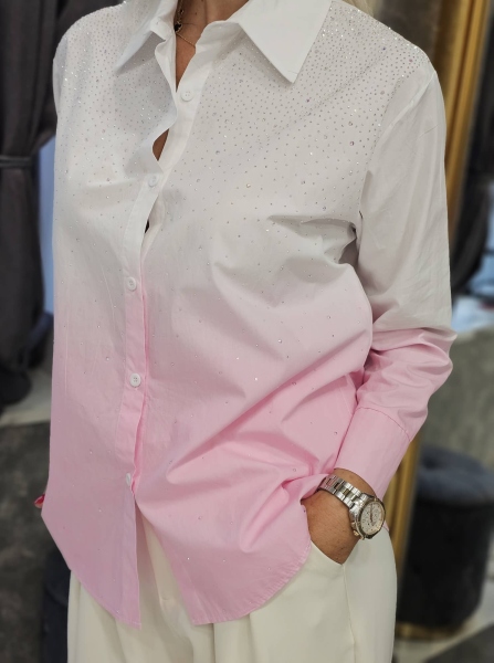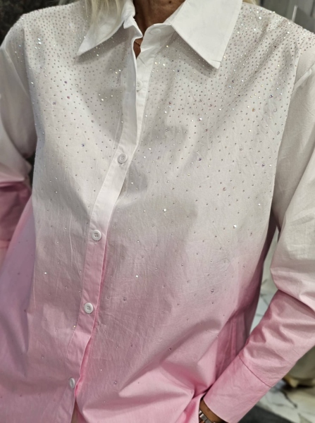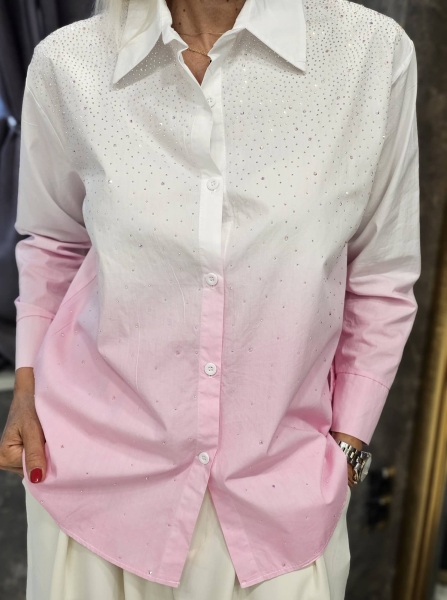 Свободна риза с декорация от камъчета. Размерът е универсален и е подходящ за M, L.