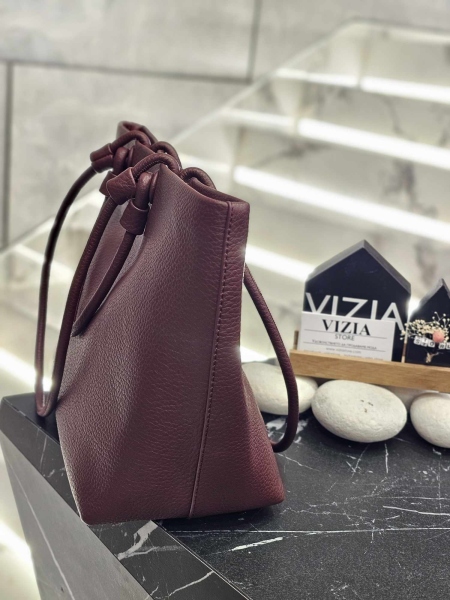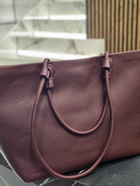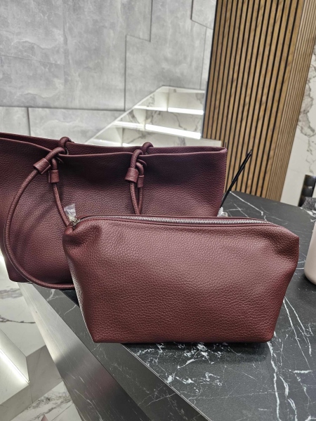 Чанта цвят бордо от еко кожа без закопчаване с два размера дръжки. Към нея има аксесоар несесер.