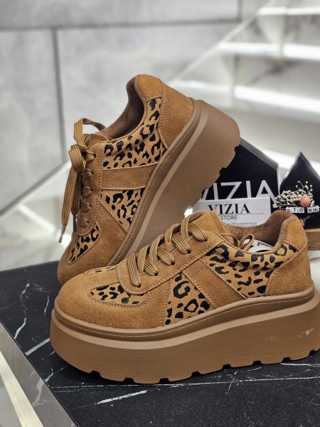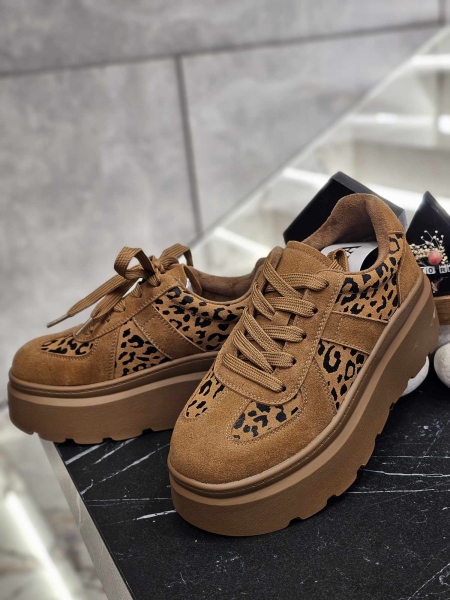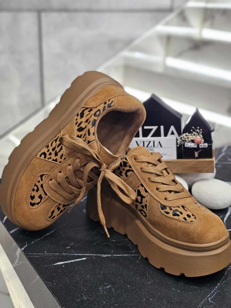 Сникърси цвят камел с декорация от еко велур и топла подплата.