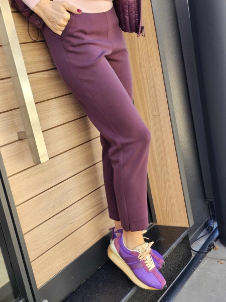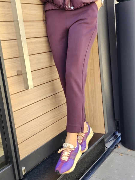 Панталон от рипсена материя с ластик на талията и стесняващи се крачоли.