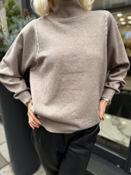 Обемно поло тип пуловер със свободен силует. Универсален размер подходящ за M, L, XL.