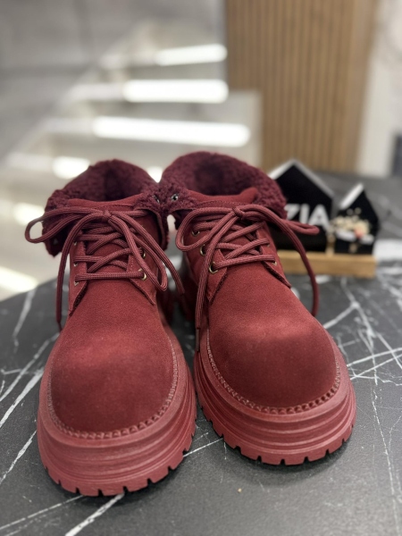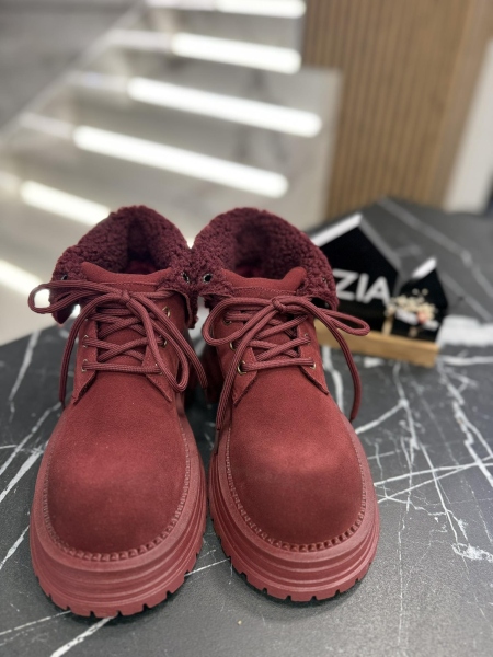 Кубинки в цвят бордо от еко велур с дебела подметка. Декорирани са с топла подплата.