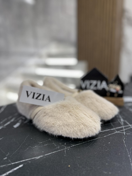 Обувки тип пантофки изработени от еко косъм в светло бежов цвят. Моделът има топла подплата: