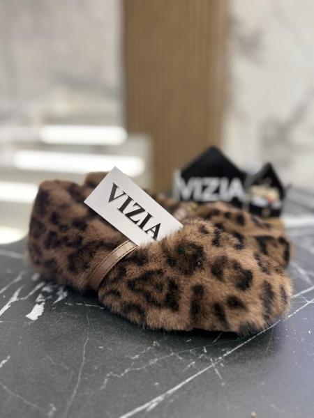 Обувки тип пантофки изработени от еко косъм с животински десен. Моделът има топла подплата: