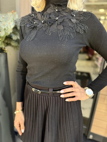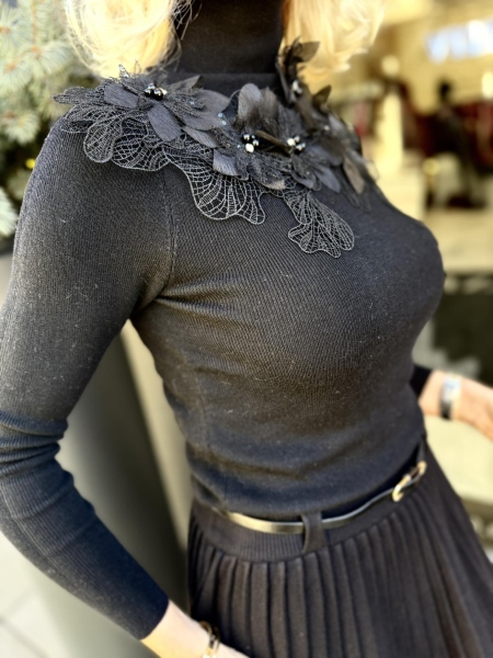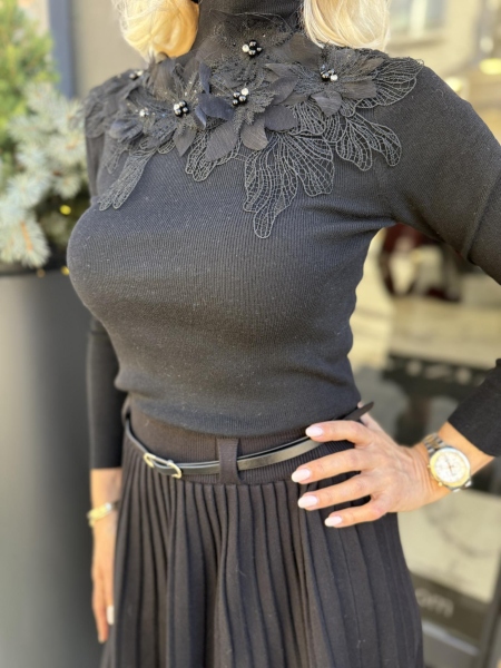 Поло в черен цвят от фино плетиво. Моделът е слим и е подходящ за S, M.