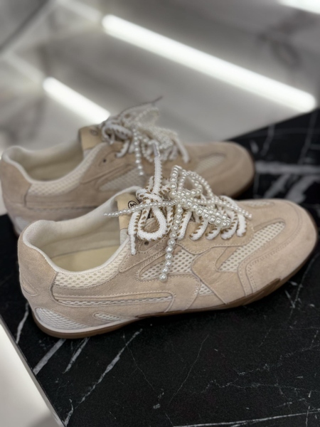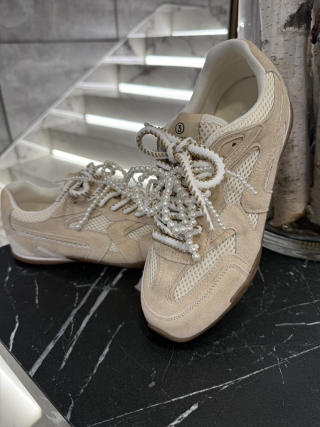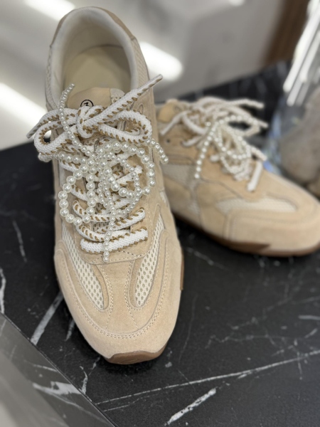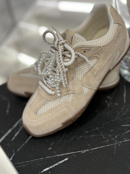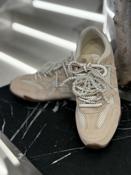 Сникърси с тънка подметка с елементи на естествен велур и полиестер. Стелката е естествена кожа.