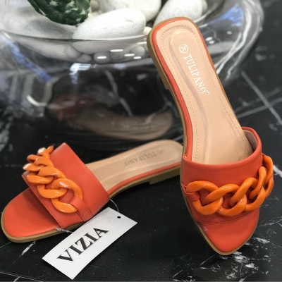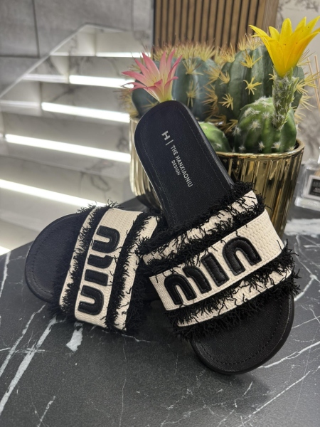 Чехли в черно и бяло с декорация. Горната част е текстил, стелката е еко кожа.