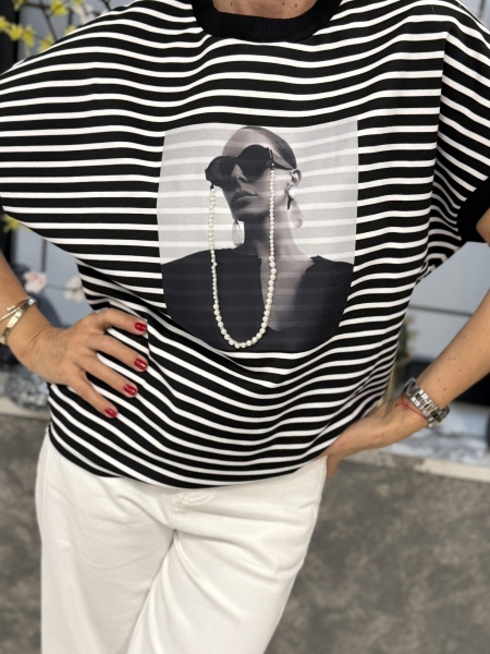 Блуза от трико със свободна кройка. Моделът е универсален размер подходящ за M, L, XL.