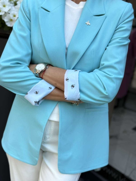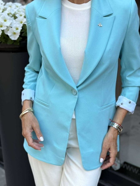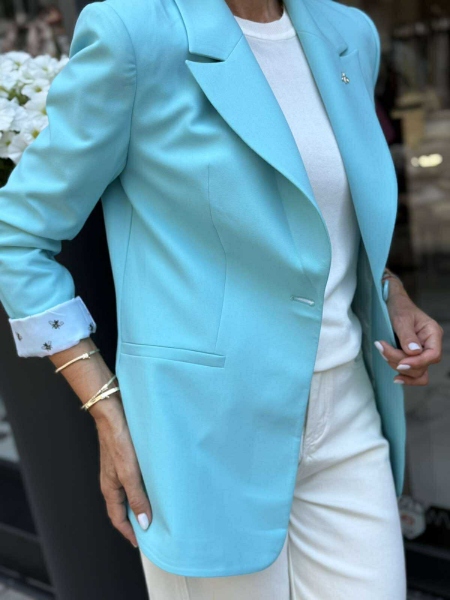 Сако от плат с втален силует. Моделът е с ревери и се закопчава с копче.