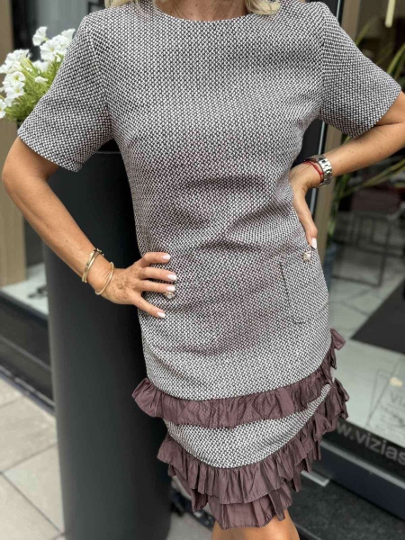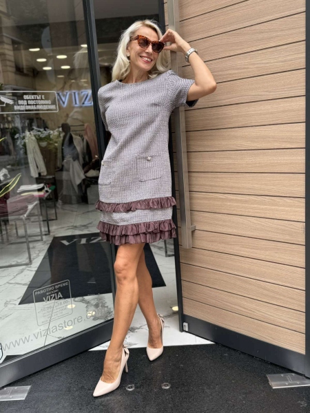 Къса рокля от букле със свободна кройка. Моделът се закопчава с цип.