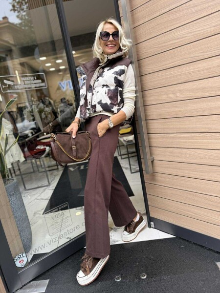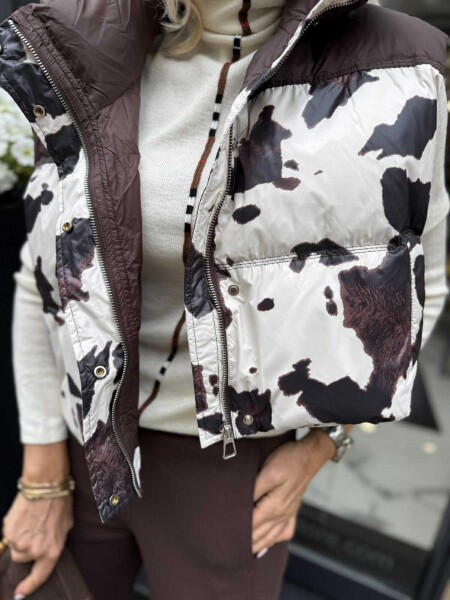 Елек от шушлякова материя със широка и къса кройка. Моделът се закопчава  цип и има странични джобове. Универсален размер подходящ за S, M, L.