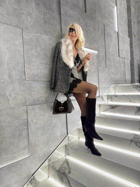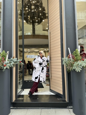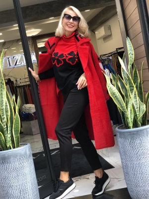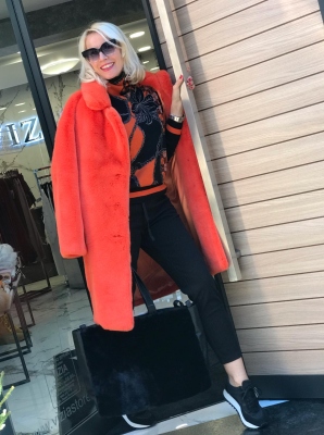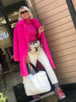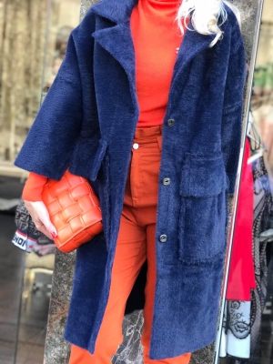 Палто в пепитен десен с яка от еко косъм, която може да се сваля. Моделът е със свободна кройка, закопчаване с копчета и предни джобове.  Универсален размер подходящ за S, M, L.