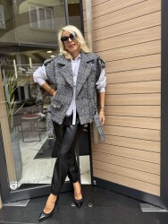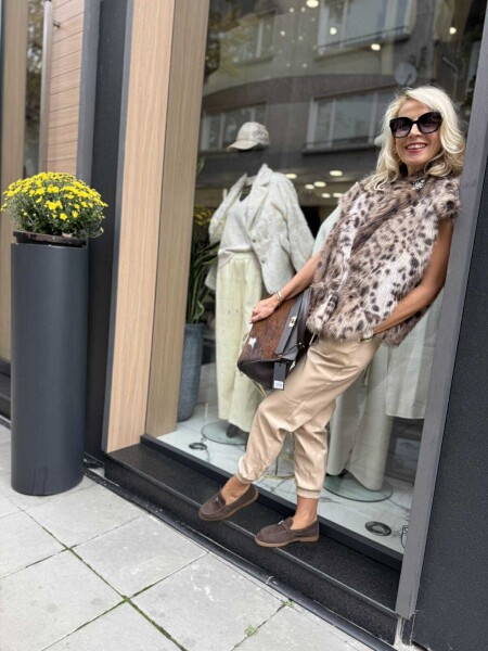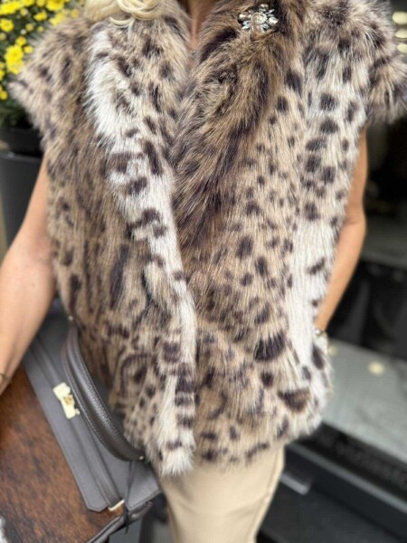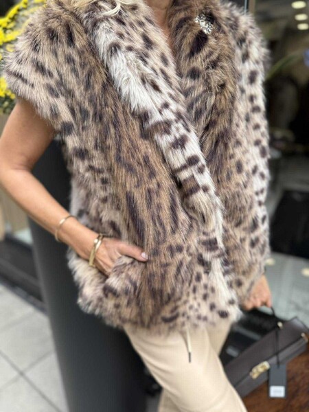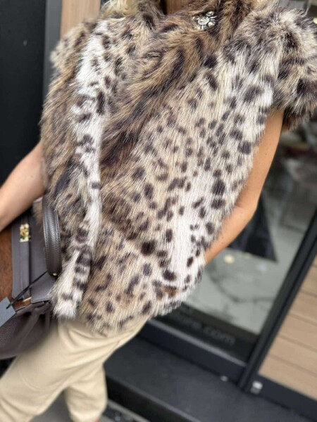 Елек от еко косъм с животински принт. Моделът е със свободна кройка и се закопчава с копчета. Универсален размер подходящ за S, M, L.