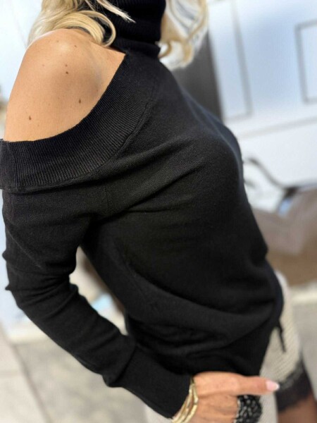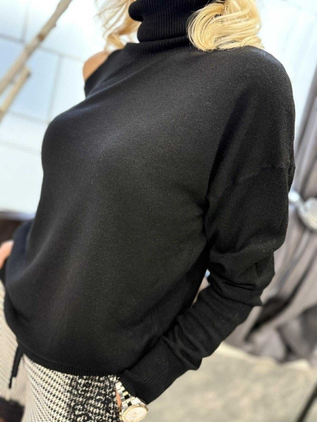Поло от фино плетиво в черен цвят със свободна кройка. Моделът е универсален размер подходящ за M, L, XL.