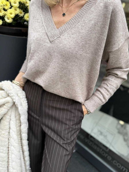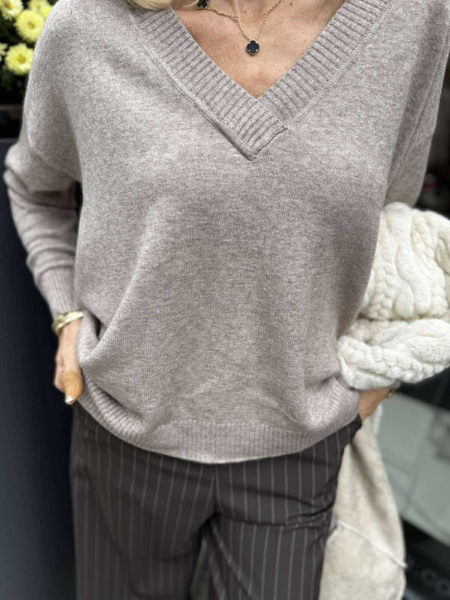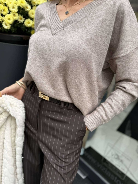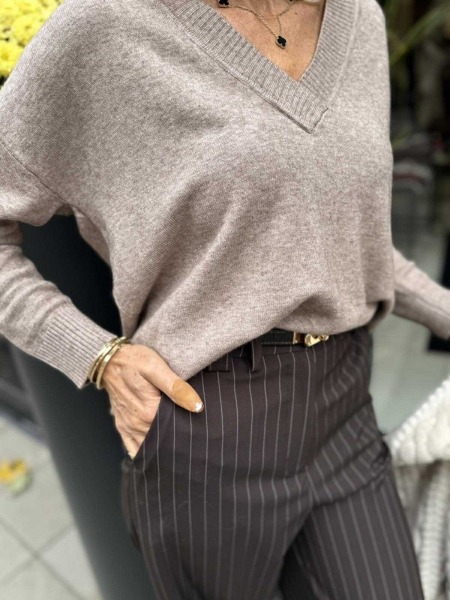 Пуловер с oversize кройка в бежов меланж. Универсален размер подходящ за M, L, XL.