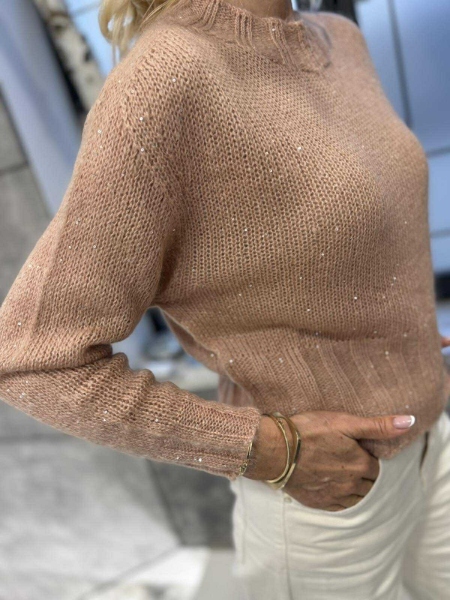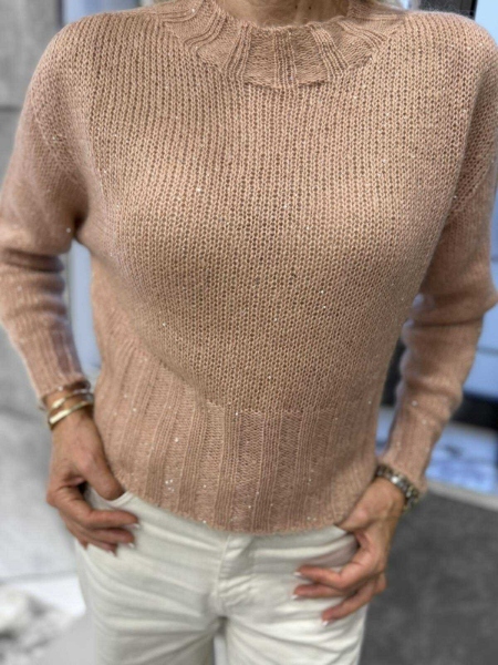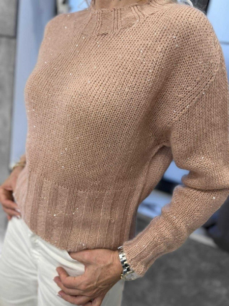 Пуловер от фино плетиво в кремав цвят с декорация от пайети. Универсален размер.