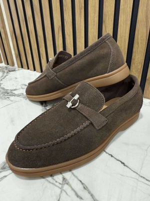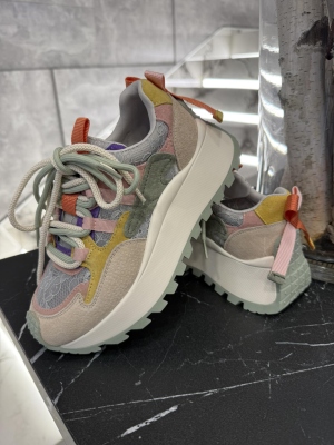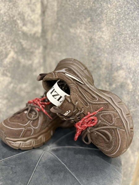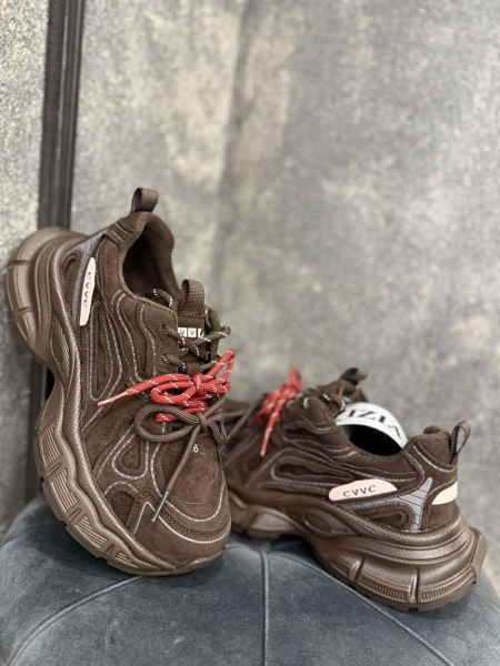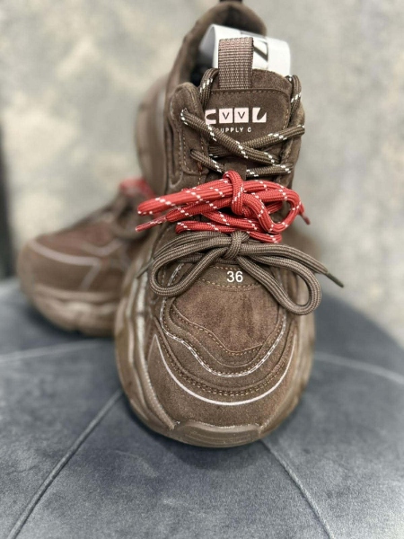 Сникърси от естествен велур в кафяв цвят с висока подметка.