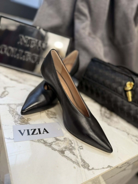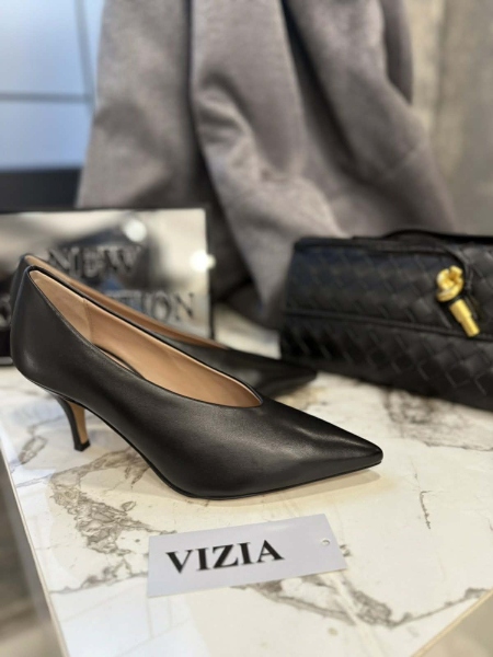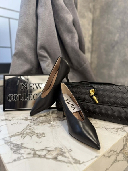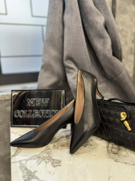 Елегантни обувки с тънко токче и заострена предна част в черен цвят от естествена кожа.