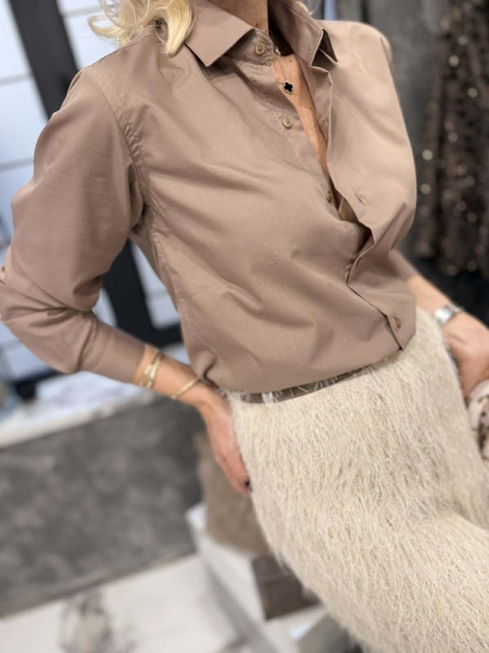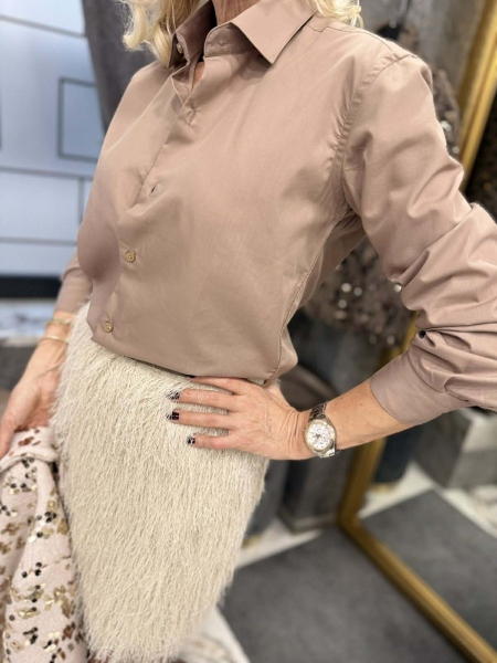 Риза в бежов цвят със слим кройка и закопчаване с копчета.
