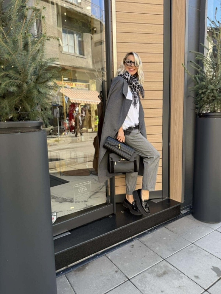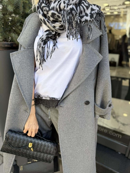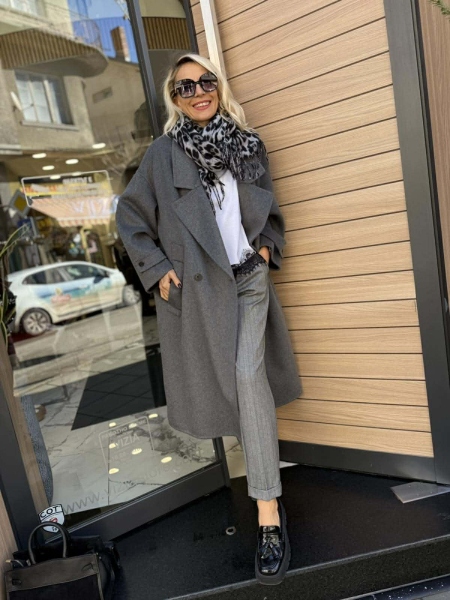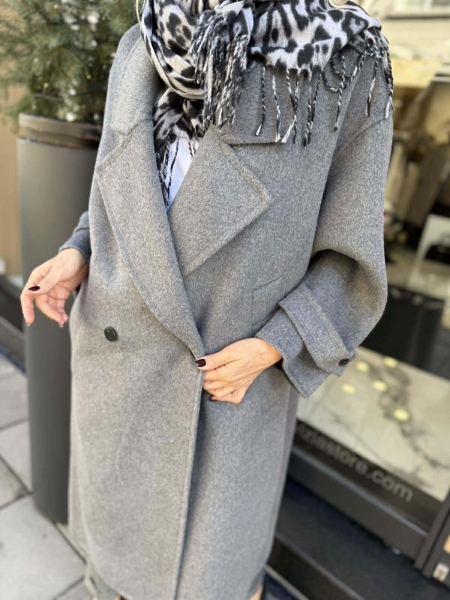 Палто от гладка материя в сиво цвят с oversize кройка и закопчаване с копчета. Универсален размер.
