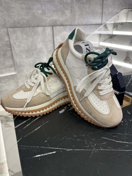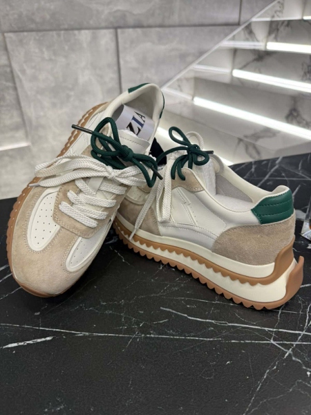 Сникърси от естествена кожа с елементи на велур. Моделът е с висока и равна платформа.