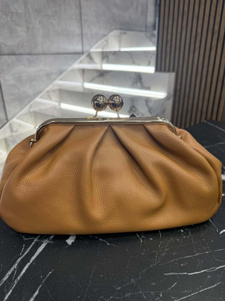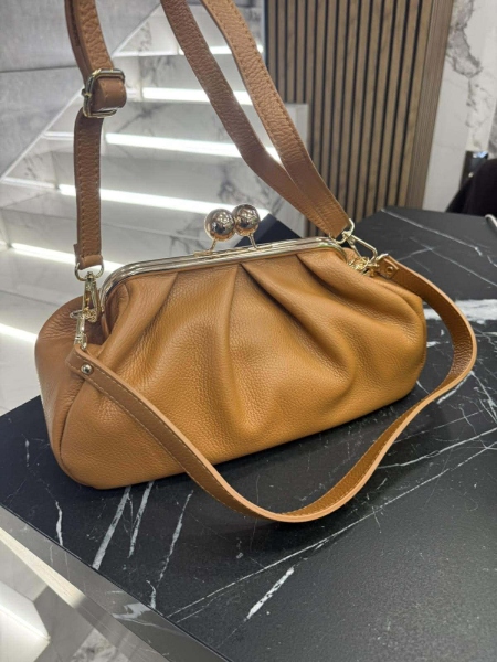 Чанта клъч от естествена кожа с две дълги дръжки, които се свалят и едно отделение.