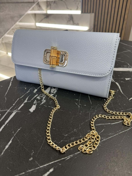 Клъч от естествена кожа с едно отделение и дълга дръжка, която се сваля.
