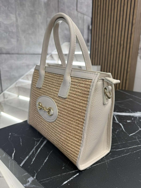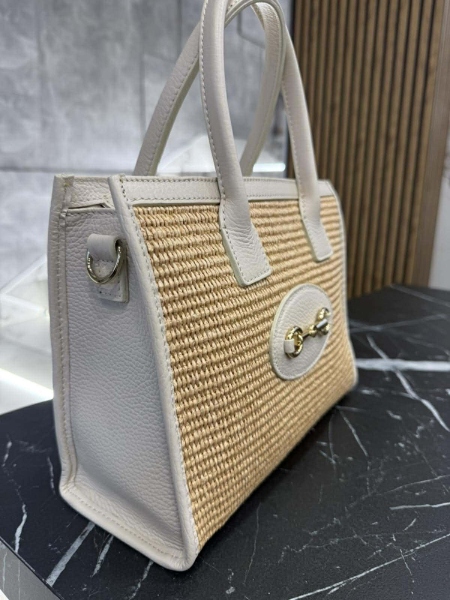 Чанта от естествена кожа  с две къси дръжки, една дълга и закопчаване с цип.